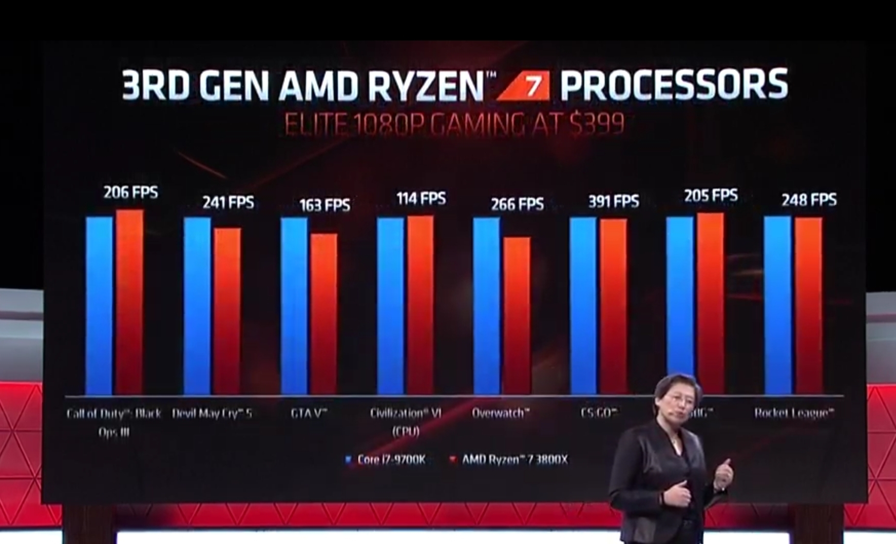 Sie haben bei den CPU's in einer Chart über 10 Spiele hinweg (größtenteils andere als beim letzten mal) einmal den 3900x gegen den 9900k gestellt, und dann den 3800x gegen den 9900k.