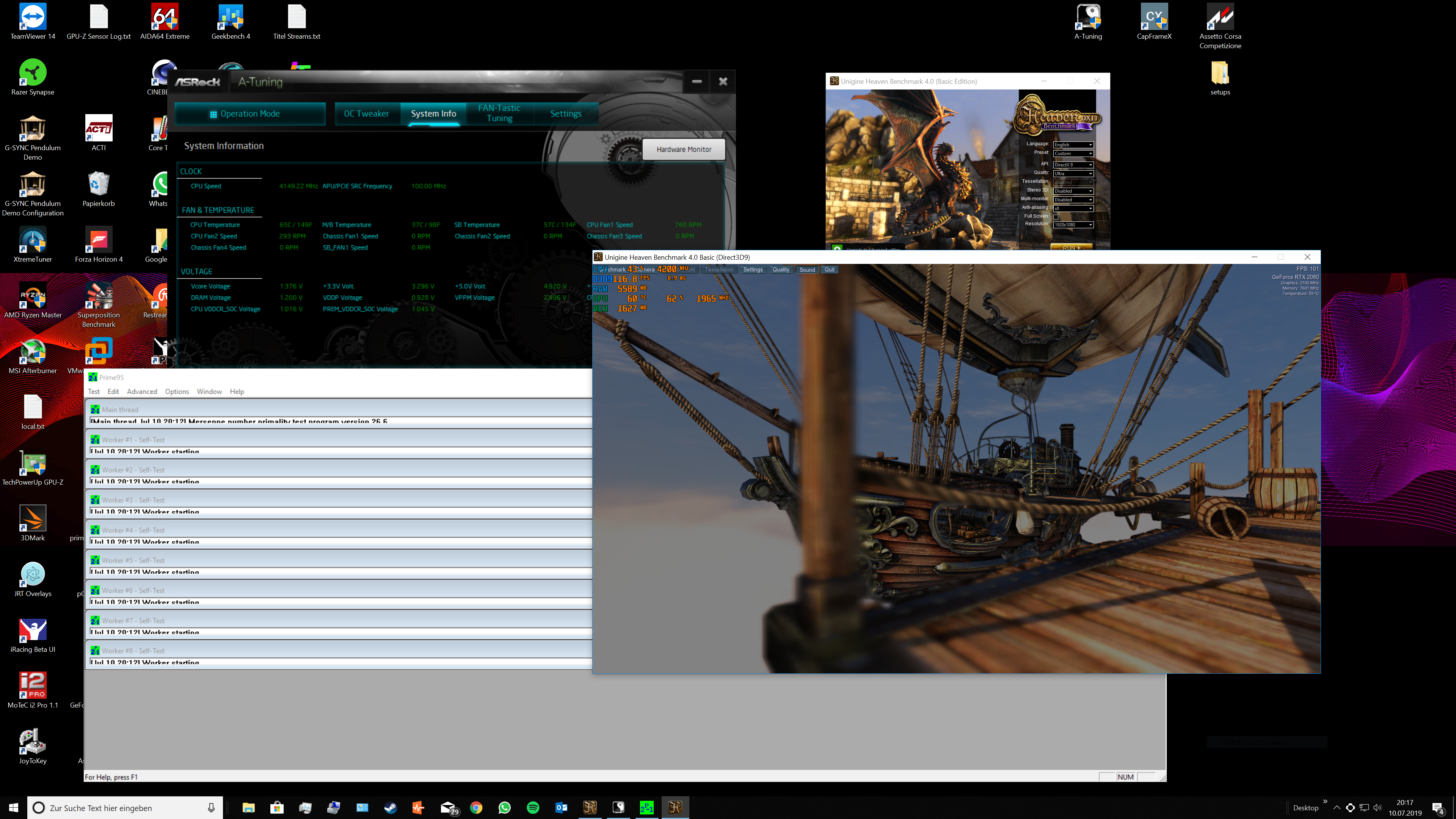 Temperaturen offenes Gehäuse mit Gehäuselüftung auf absolutes minimum für (auch für Graka) während Prime 6 Threads und Heaven zeigt der Chipsatz um die 57-58°C - aber nur 15-20min laufen lassen.