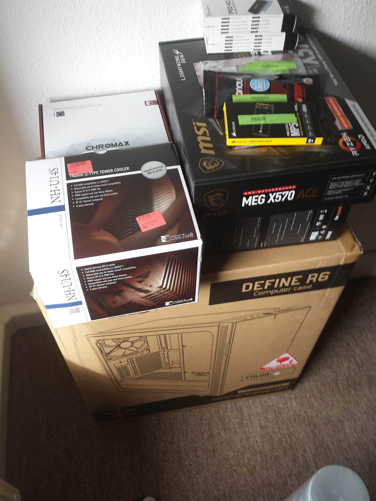 Ich sitze auch schon auf "gepackten koffern", ich warte nur noch auf den Ryzen 3800X, Noctua 2x Y-Kabel für 4-Pin PWM (NA-SYC1) und meine 2. M2-SSD von Corsair bzw. PNY. Je nachdem was am Montag verfügbar ist...😚