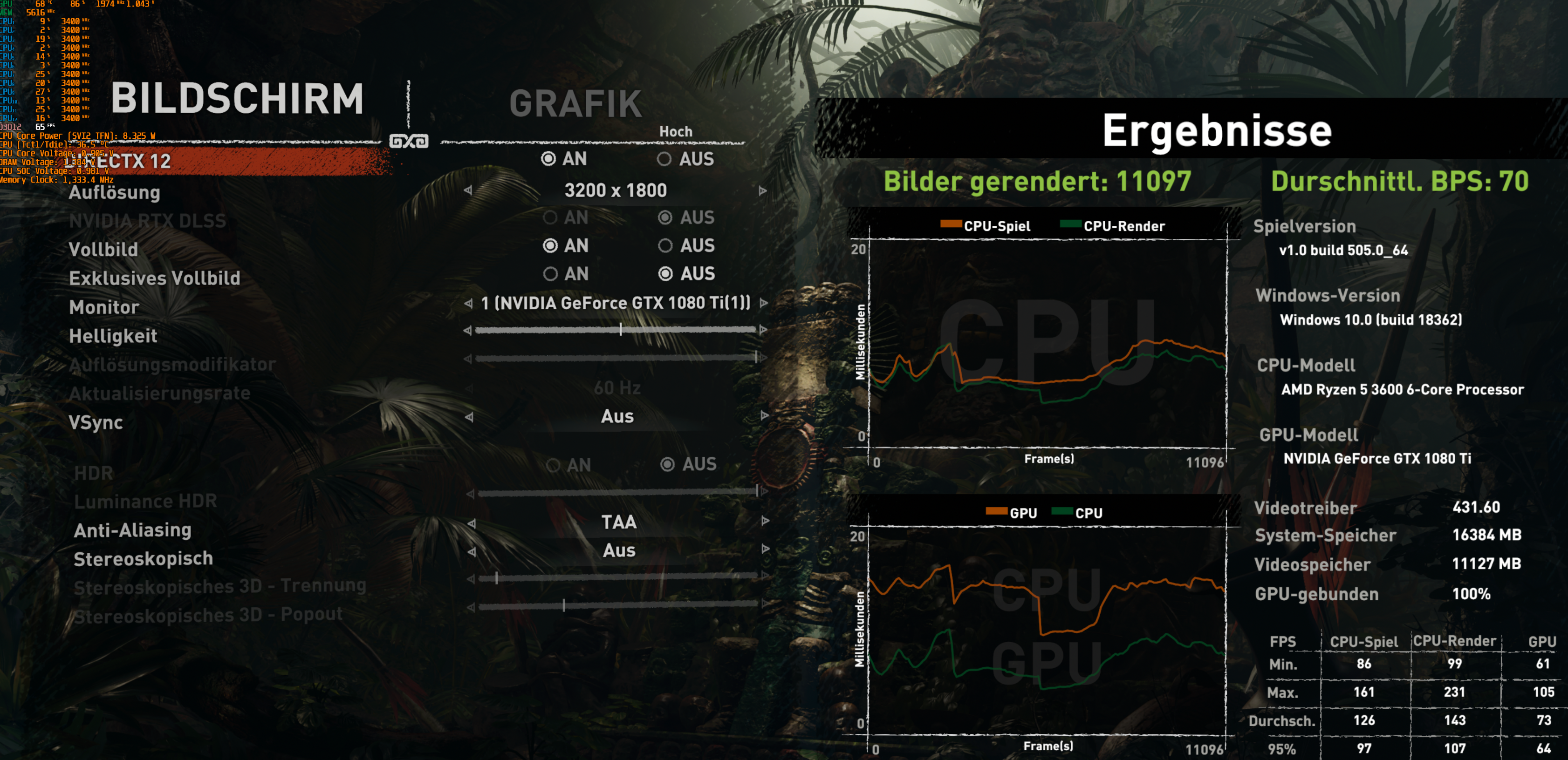 Im CPU Spiel AVG lieg ich zwischen 230 bis über 250FPS je nachdem Auflösung RTX DLSS etc..