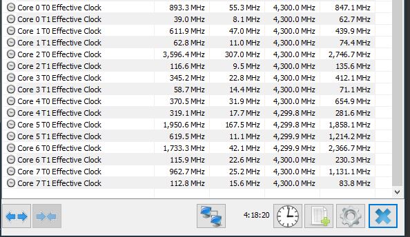 Singlecore sieht das anders aus, da bleibt die CPU dann zwischen 4500 und 4575MHz allerdings mit 1.495 - 1.526 Volt auf dem aktiven Kern (ist board seitig so, vcore steht auf auto ohne Offset)