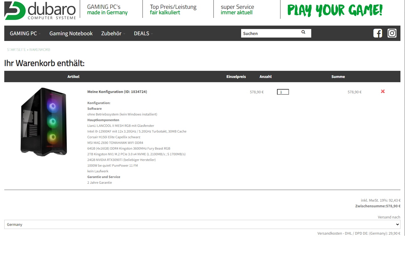 Da sind wir bei 650, allerdings mit Kühler 35€ drüber, aber den Kühler würde ich in jedem Fall nicht einsparen, der spart sich an Strom und Lebensdauer selbst ein.