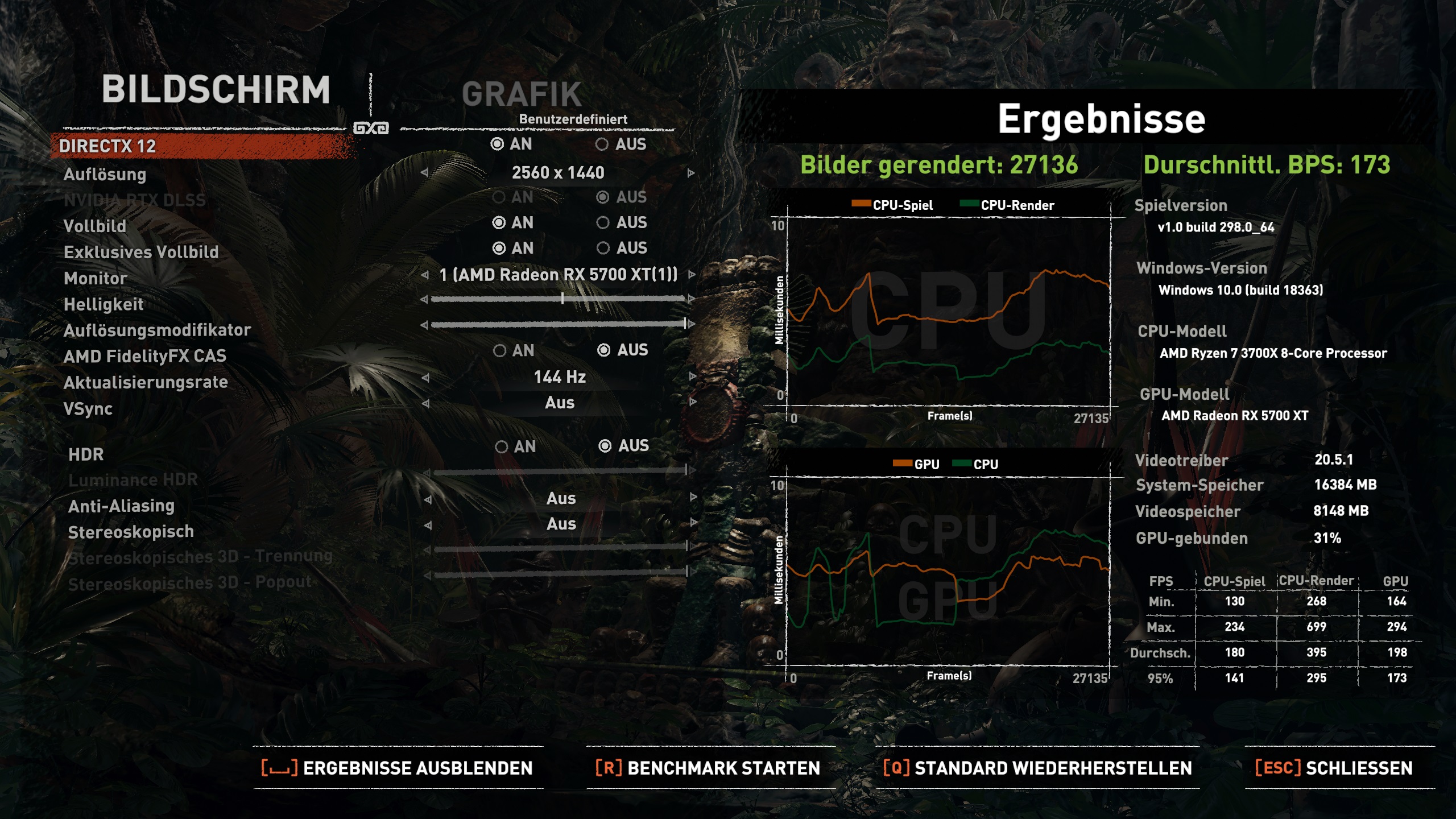 Selbst mit meiner 5700XT bin ich hier bei den niedrigsten Einstellungen in 1440p schon im GPU-Limit in diesem Benschmark (und das Spiel ist wie alt?).