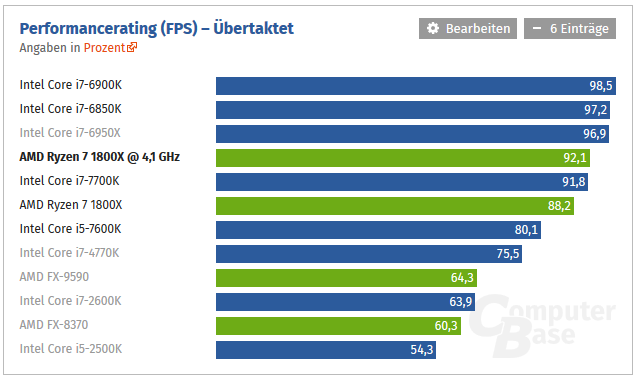 Der Gamer kann den Ryzen auf 4-4,1 GHz übertakten und die ähnliche Gaming-Leistung wie ein 7700k. (siehe CB Test)