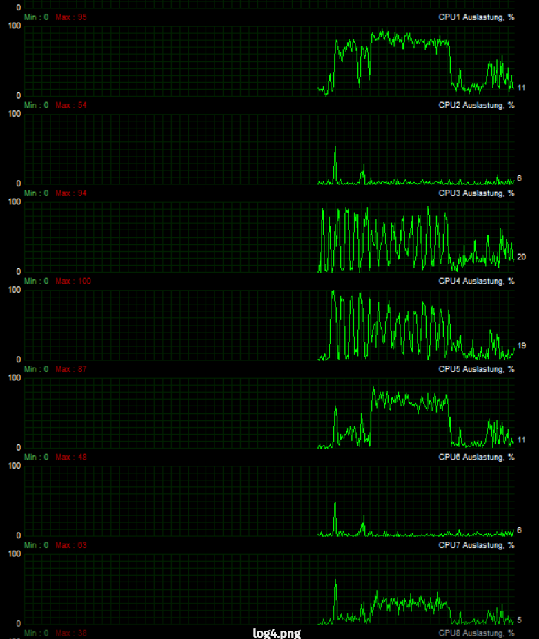 ich habe seit einiger Zeit erhebliche Framedrops beim Zocken. Ich habe mit dem Programm CapFrameX nun mal auf einer Benchmark Map im Game meine Frames / CPU Auslastung aufgezeichnet und dort immer wieder zu sehen, dass sich die Auslastung der Kerne 3 / 4 immer stark zwischen 0% und 100% schwankt, also eine Art "Sägezahn Muster" aufweist.
