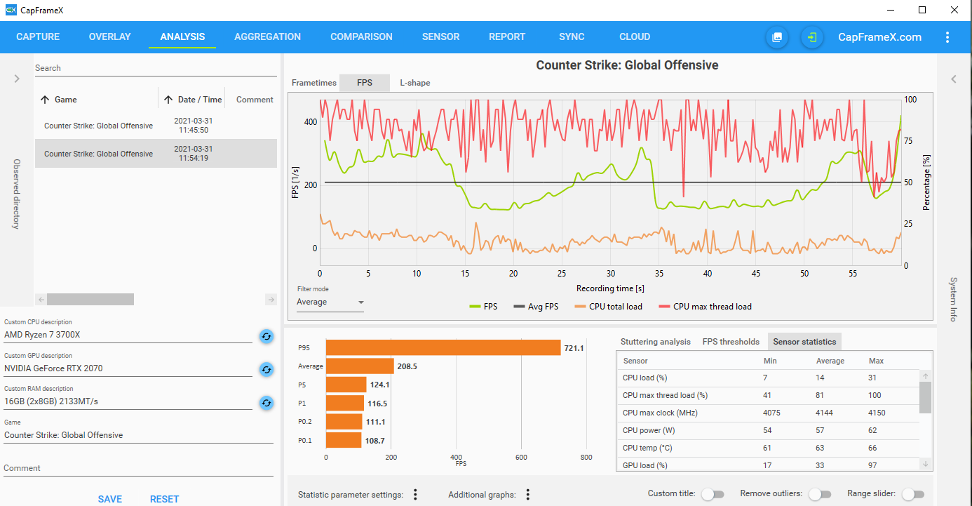 Die anderen Aufzeichnungen habe ich mit Afterburner während eines "normalen" Spiels gemacht.