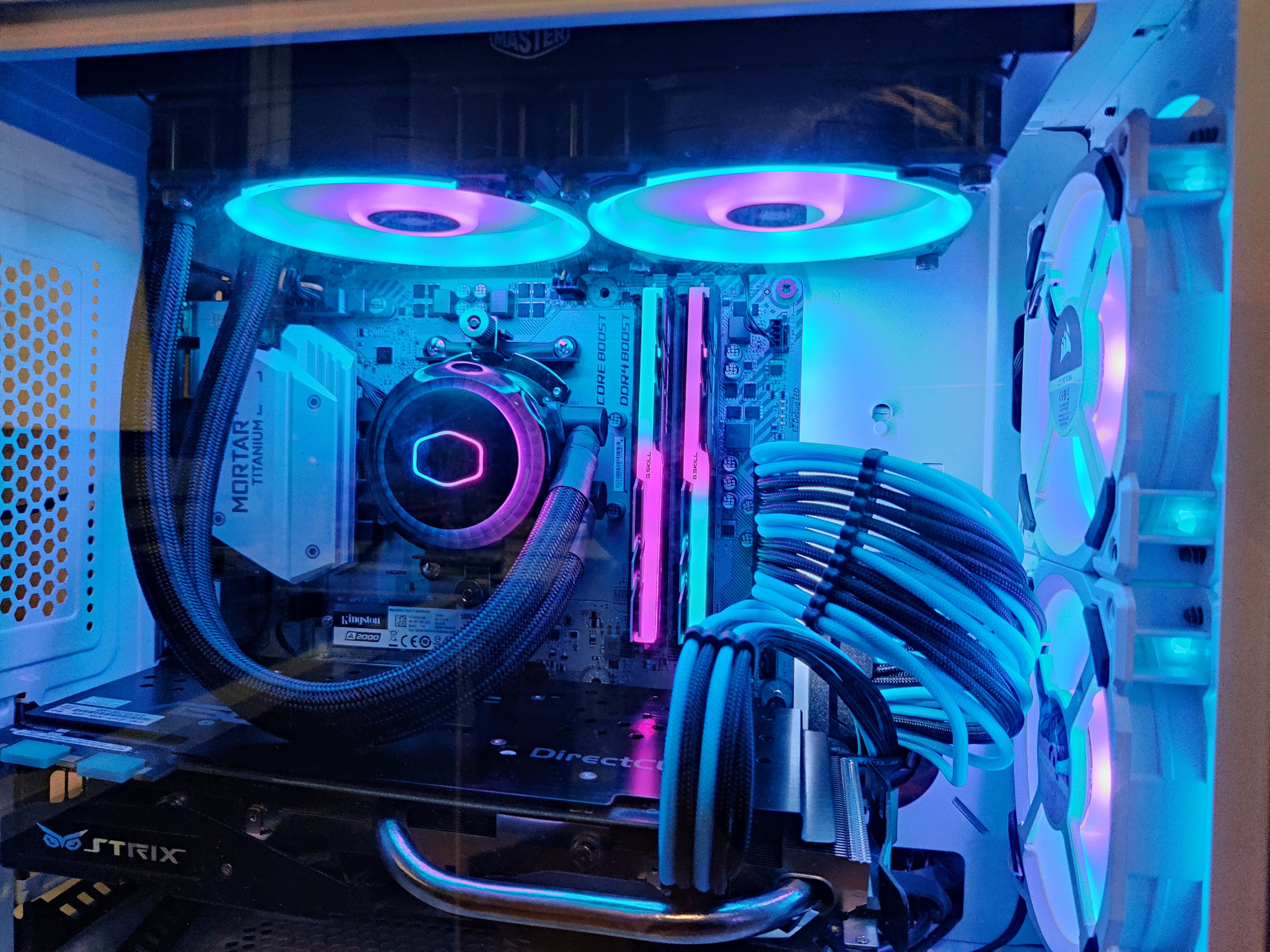 Mein Ryzen 7 3700x läuft auf leichtem OC bei 1,35V &4,2Ghz. Gekühlt wird die Cpu von meiner Coolermaster Masterliquid 240r RGB. Der OC läuft an sich gut, ich muss einen guten Chip erwischt haben, 4,4ghz waren bei entsprechender Spannung möglich. Dann stürzt das System jedoch nach 10m Prime 95 aufgrund der Temperaturen ab. Doch selbst bei Recht niedrigen 1,35V wird die Cpu bei mir extrem heiß. Im Prime 95 (zieht da gut 140W) wird die Cpu mach 10m ganz locker 94° Grad Warm... Das kann doch eigentlich nicht sein, vor allem wenn man bedenkt, dass ich eine 240er AIO nutze... Läuft auf einem B450 Mortar Titanium Brett. Verbaut ist alles im Crystal 280x. Lüfterkurve ist angehängt, kann jedoch eigentlich nicht daran liegen. Habe schon alle 4 Lüfter auf 100% gedreht, das macht es auch nicht viel besser. Ich habe zuvor noch nie eine AIO verbaut. Auf dem Radiator laufen 2 ll120er Lüfter. Sind nicht die perfekten Radiator Lüfter, aber auch gar nicht so schlecht (siehe Caseking YouTube Video!) Im idle ist er ca. 50°, was der Lüfterkurve geschuldet sein dürfte... Während Cinebench R20 bleibt er jedoch entspannte 80°(geht ja auch nur kurz) Beim zocken(nutze ihn da nur zu ca. 30% aus) ist er bei ca. 70°