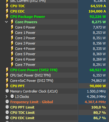 Als Beispiel mal ein Ausschnitt mit den gelb markierten relevanten Werten in HWInfo (PPT auf 90W gestellt):