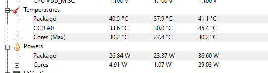 Ich habe nun mit AMD-Systemen leider wenig aktuelle Erfahrung (mein letztes AMD-System war ein AMD K8 Athlon 64 X2 3800+). Indessen ist es so, dass er im Idle-Betrieb (ohne aktive VM) bei unter 5 % 'Last' (und auch im Bios) bei gut 60-65 °C vor sich hinarbeitet. Ich habe mich aktuell noch nicht getraut das System einmal richtig zu stressen, da mir die Temperatur etwas komisch vorkommt, um dann einen Überblick über die Temperatur zu haben. Ich dachte eigentlich, dass ich mit einer 65W TDP-CPU (schon klar, das sagt nicht viel aus) da keine Probleme haben sollte.