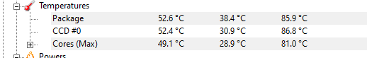 Jop, 4340 Mhz max Takt, voll ausgelastet, 90.025W max, 50.4 Grad max TDie, 62A TDC, 65A EDC. Ram 6000 MT CL30, 35 Grad auf dem PCH, 1440 RPM max auf dem TR PS EVO, CPU durchgängig Power limitiert.