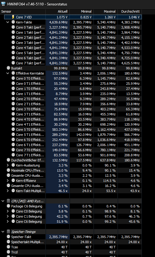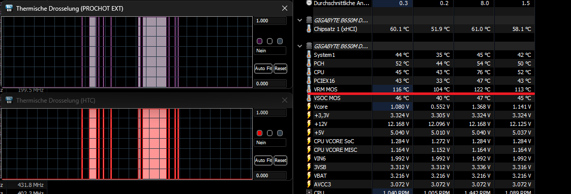 Seit gut einer Woche kann ich beobachten das meine CPU einfach auf ~500Mhz runtertaktet. Dies geschieht unter Last wie auch im Idle. Manchmal läuft es einwandfrei und dann gibt es Tage da passiert es im 10 Minuten Takt - gerade beim spielen macht das keinen Spaß. Die Temperatur liegt eigentlich auch im grünen Bereich max 89°C beim Cyberpunk spielen auf max. Einstellungen.