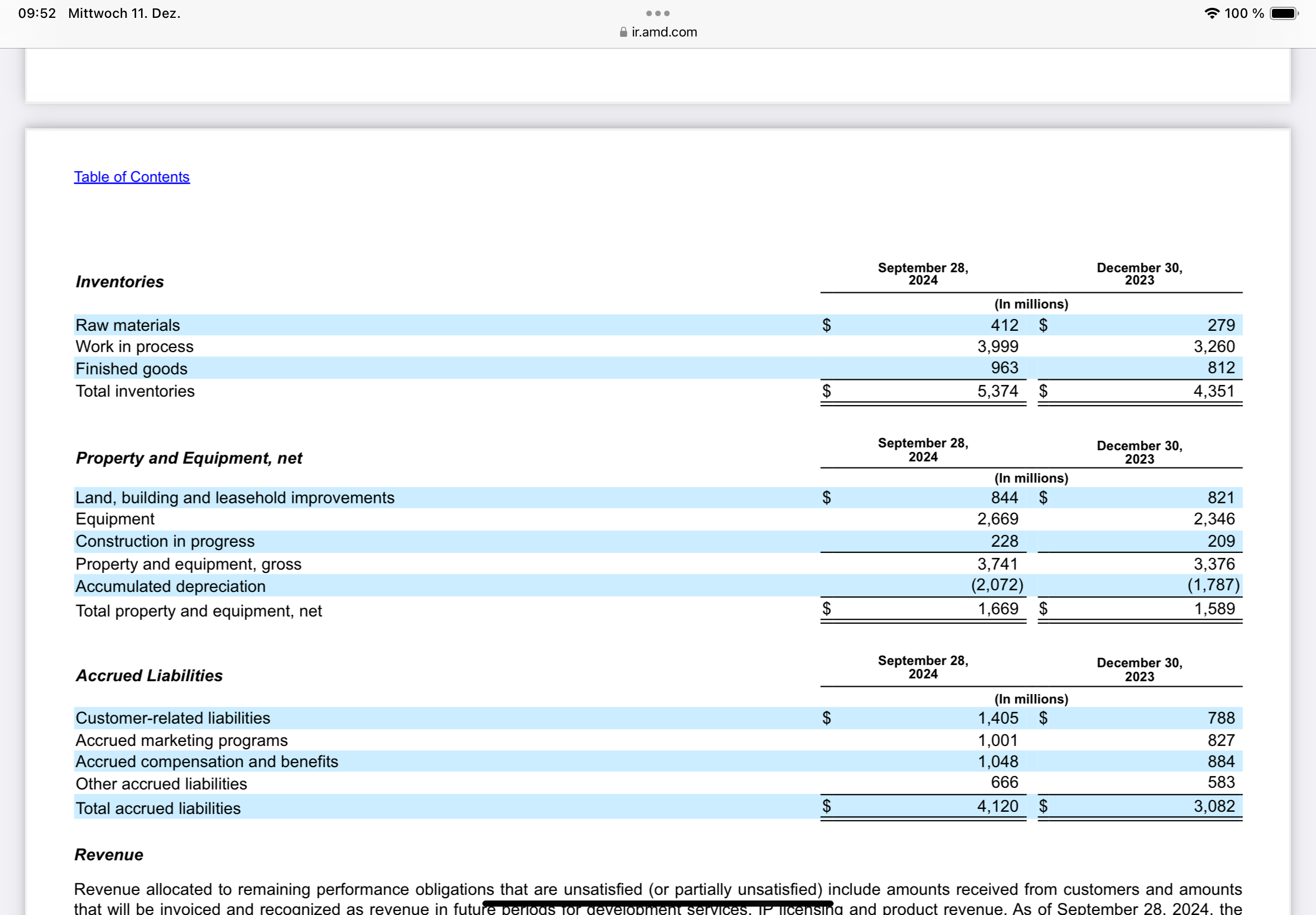 AMD hat Obwhl der Umsatz nahezu gleich ist ein Inventar von fast 2Mrd. mehr wie im Q2/22 nur an Unfertigen Produkten.