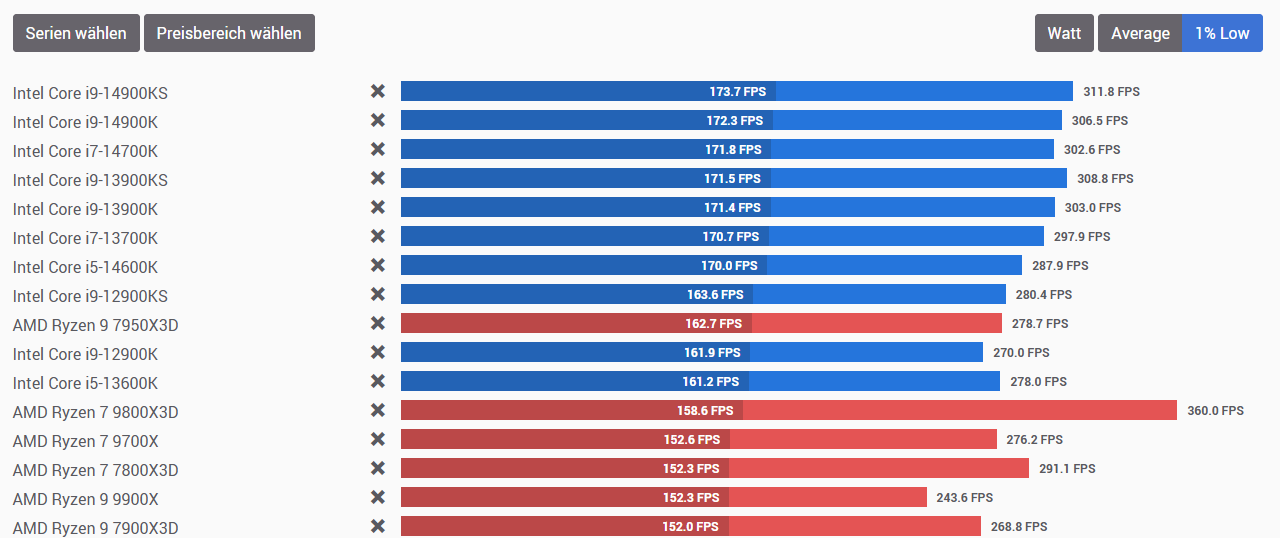 Ein künftiger AMD 11800X schafft AVG 100 FPS und bei den 0.1% 80 FPS.