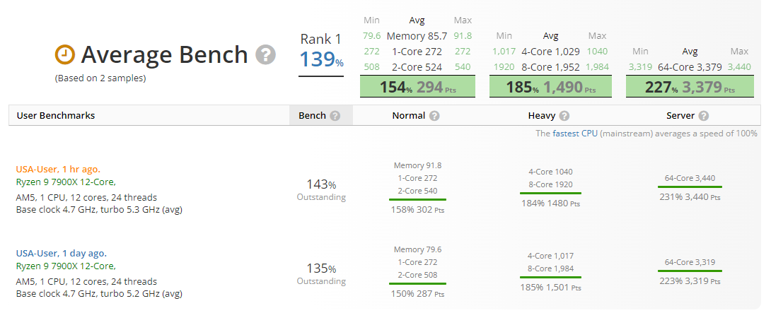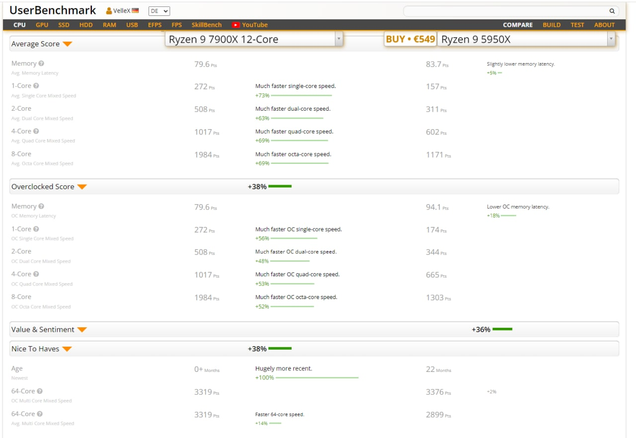Userbenchmark scheint wohl wieder das Ranking oder die Bewertung angepasst zu habenVelleX schrieb:Zweiter Benchmark eines 7900X, diesmal auf einem MSI MEG X670E ACE Board und 6000er RAM