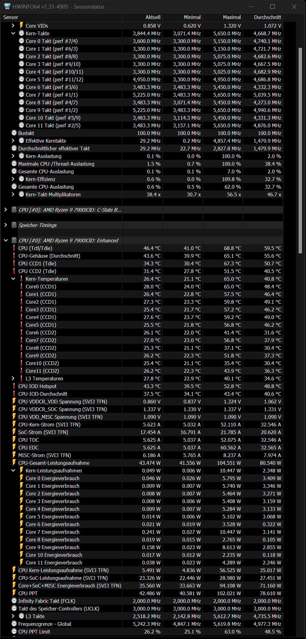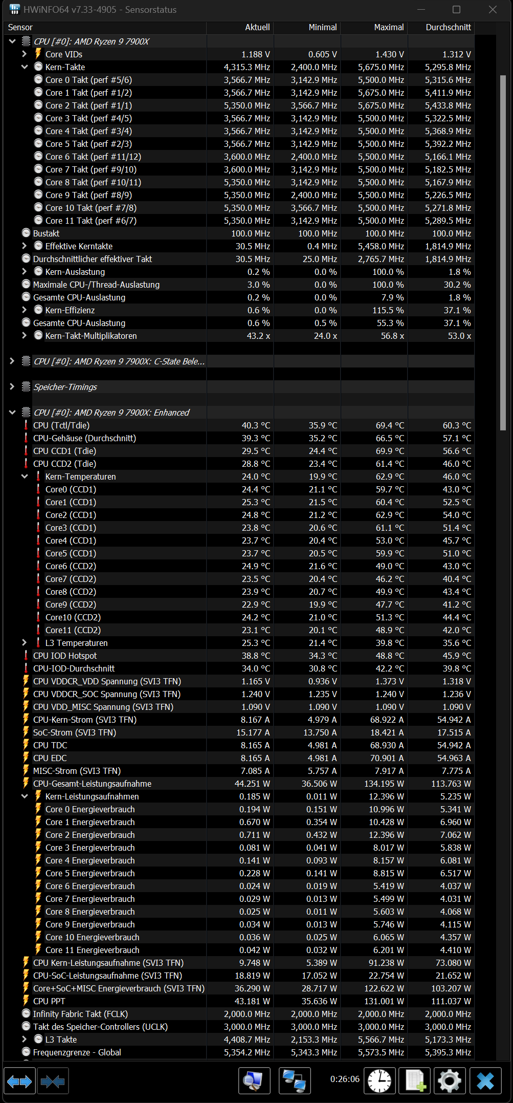 Ich hatte EXPOII noch nicht geladen. Mit EXPOII liegt die Leistungsaufnahme im IDLE nun bei 43W und ist damit 7W schlechter als beim normalen 7900X! Puh, gerade noch entdeckt.