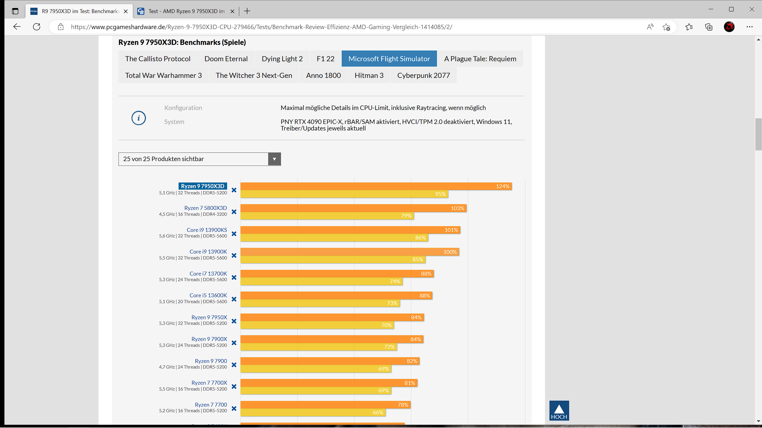 Die Effizienz kann sich mal wirklich sehen lassen. Aber dass der 7950X mal eben trotz 16 Kernen den 5800X3D hinter sich lässt, hat mich wirklich überrascht. Hab ich echt nicht mit gerechnet.