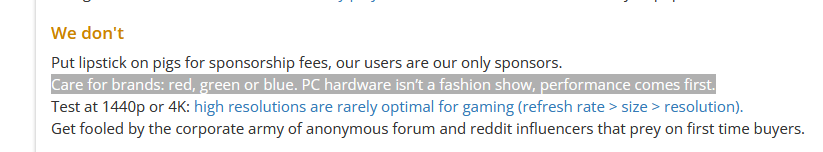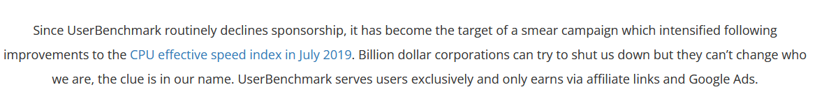 Userbenchmark hält eindeutig fest in den Leitsätzen, dass sie neutral sind.