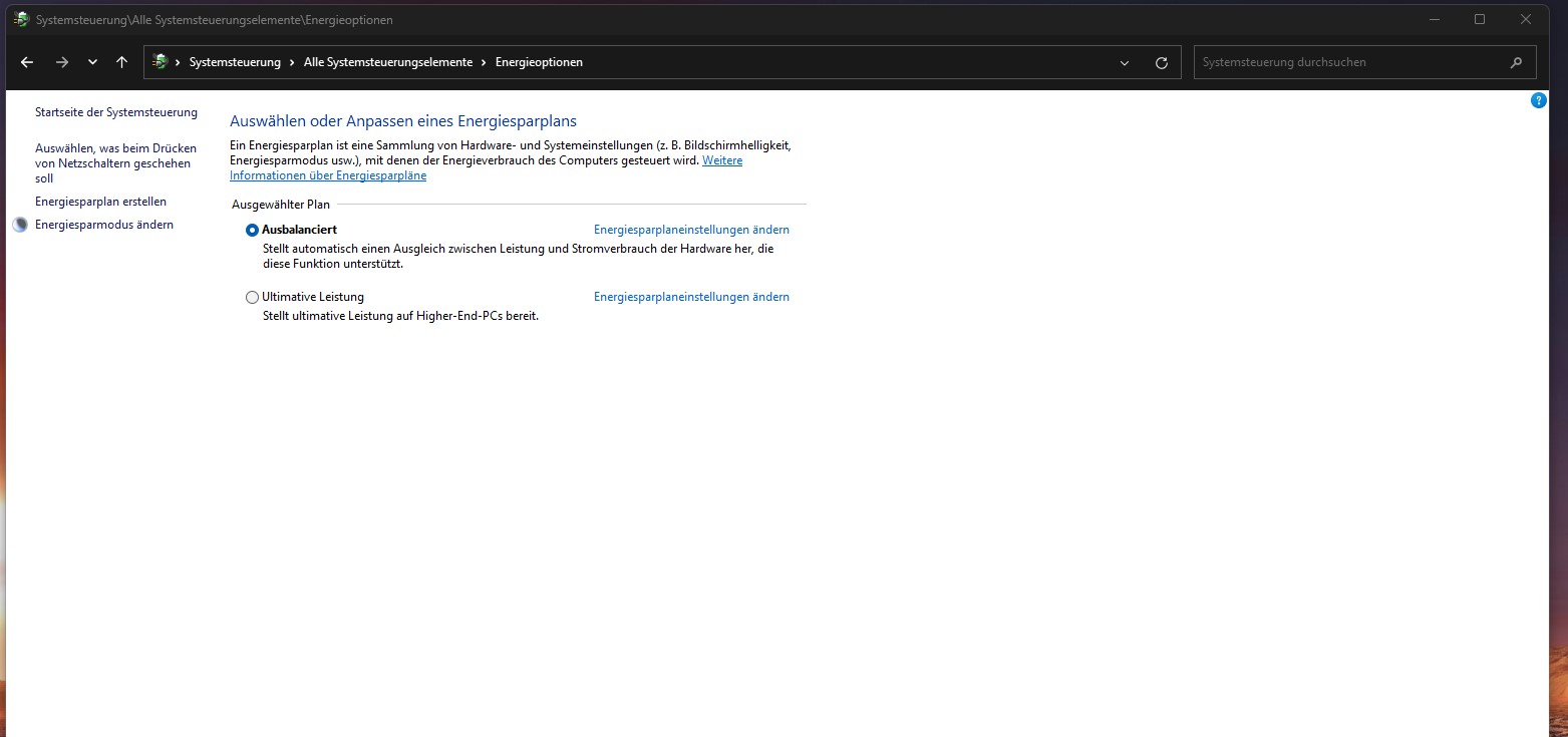 Kann mir jemand bitte helfen? Ich kann unter Windows 11 nirgends mehr meinen Energiesparplan ändern.