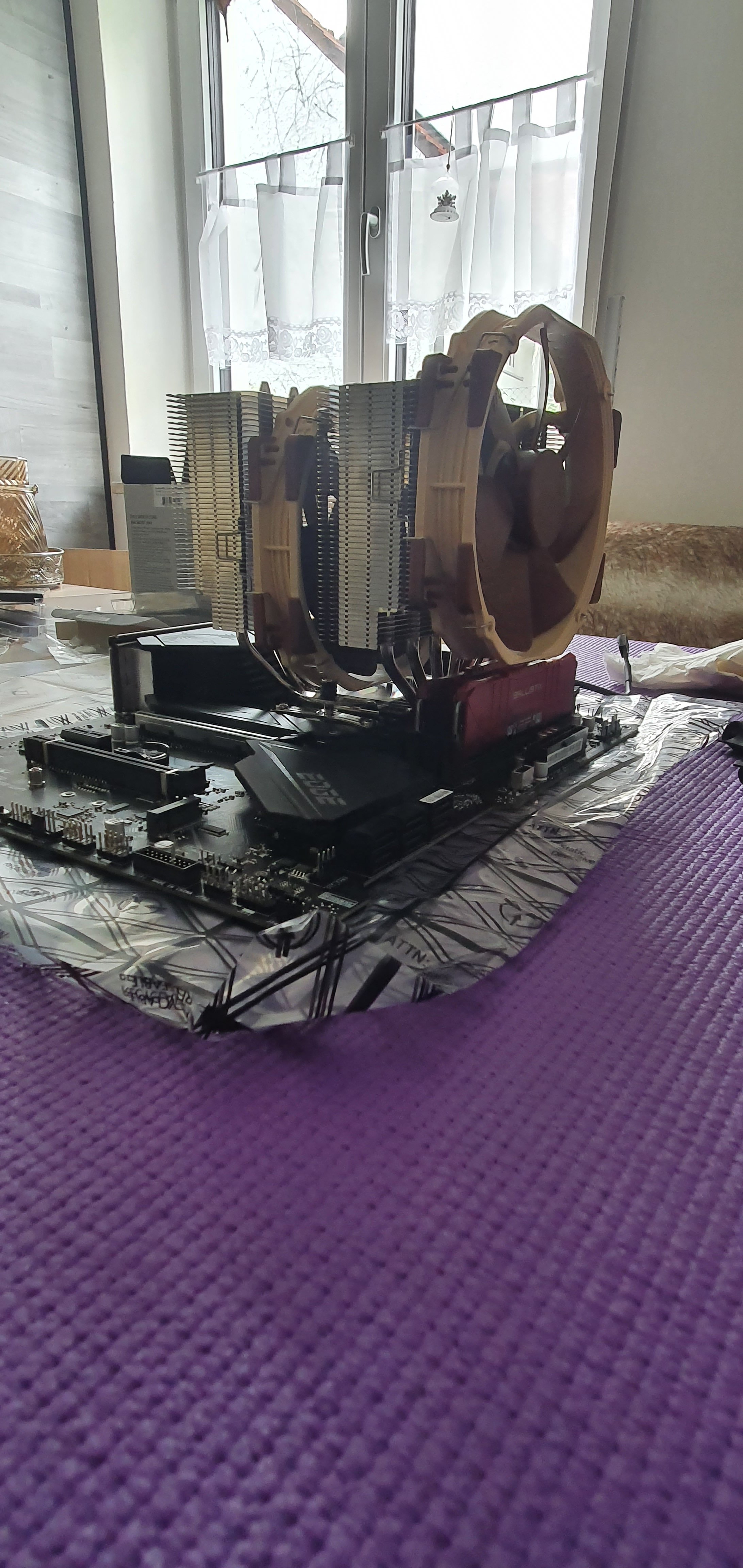 Hatte den Noctua bestellt gehabt. Einbau ging fast gut, der zweite Lüfter passte nicht drauf, da Speicher zu hoch... Habe ihn jetzt zum Deckenlüfter im Gehäuse eingesetzt.