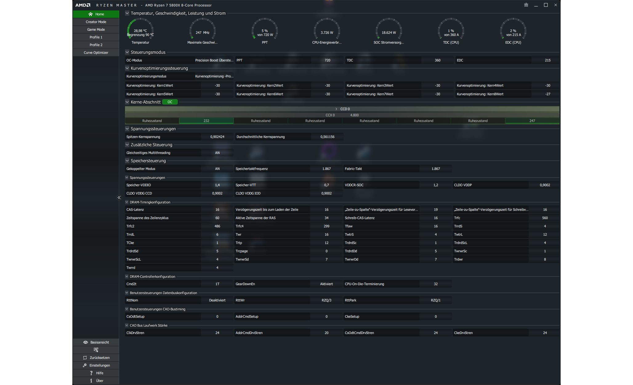solche Werte von Hausaus einträgt? Selbst nach zurücksetzen des Bios und Deinstallation+Installation von Ryzen Master stehen da diese Werte. Das erscheint mir alles etwas sehr hoch zu sein.