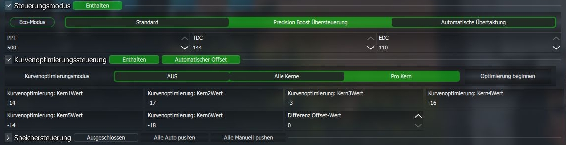 RM hat auf allen Kernen -30 ausgespuckt. Das läuft zwar Game stable, CB stable und 3D Mark stable, aber schmierte in CoreCycler recht schnell ab.