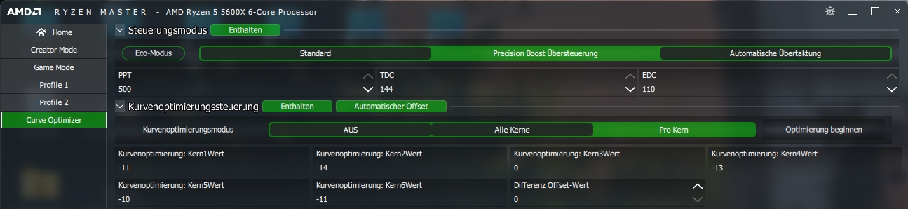 Die optimized Curve vom RM musste ich jetzt aber fast wieder komplett zurücknehmen, nur einzelne Kerne habe ich noch die ein oder andere Stufe niedriger eingestellt als vorher. Also, back to the roots von vor einem Jahr, die RM Optimierung ist Mist