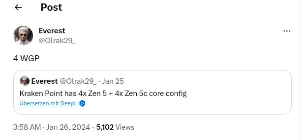 (Unter update Update 07.08.2023)ETI1120 schrieb:Aber laut den genannten Spezifikationen taugt Kraken Point nicht als Budget Lösung im Vergleich zu Strix Point. Wenn ich Zen 5c mit 65 % der Fläche von Zen 5 veranschlage komme ich auf eine um ca. 14 % kleinre CPU-Fläche von Kraken Point im Vergleich zu Strix Point. da die CPU-Kerne aber nur einen sehr kleinen Teil der Gesamtfäche ausmachen lohnt sich das nicht.