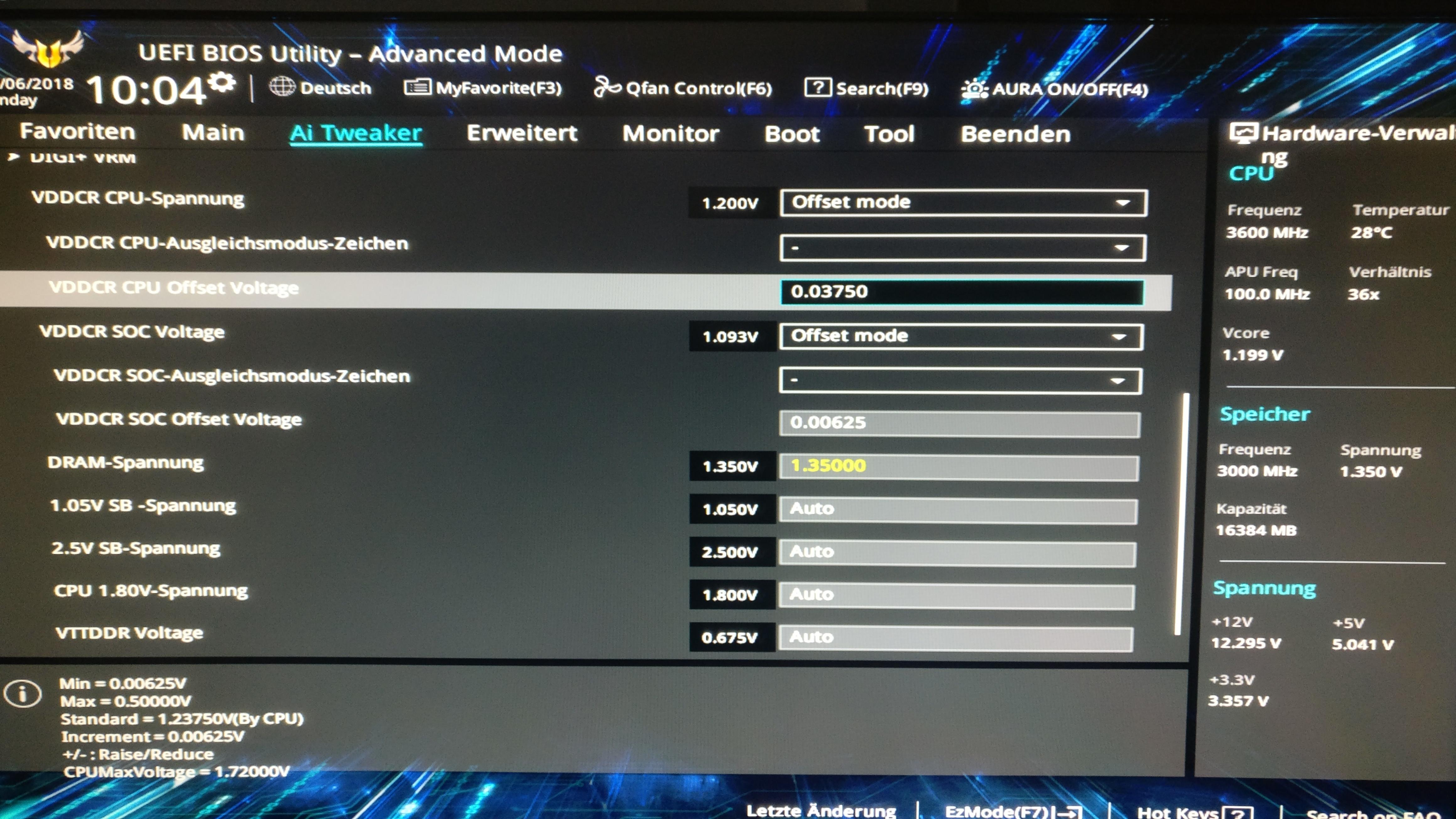 ich habe meine CPU mit folgenden Einstellungen übertaktet, System läuft stabil. Ich würde mich freuen, wenn sich jemand die Werte anguckt und eventuell noch ein paar bessere Ideen hat.