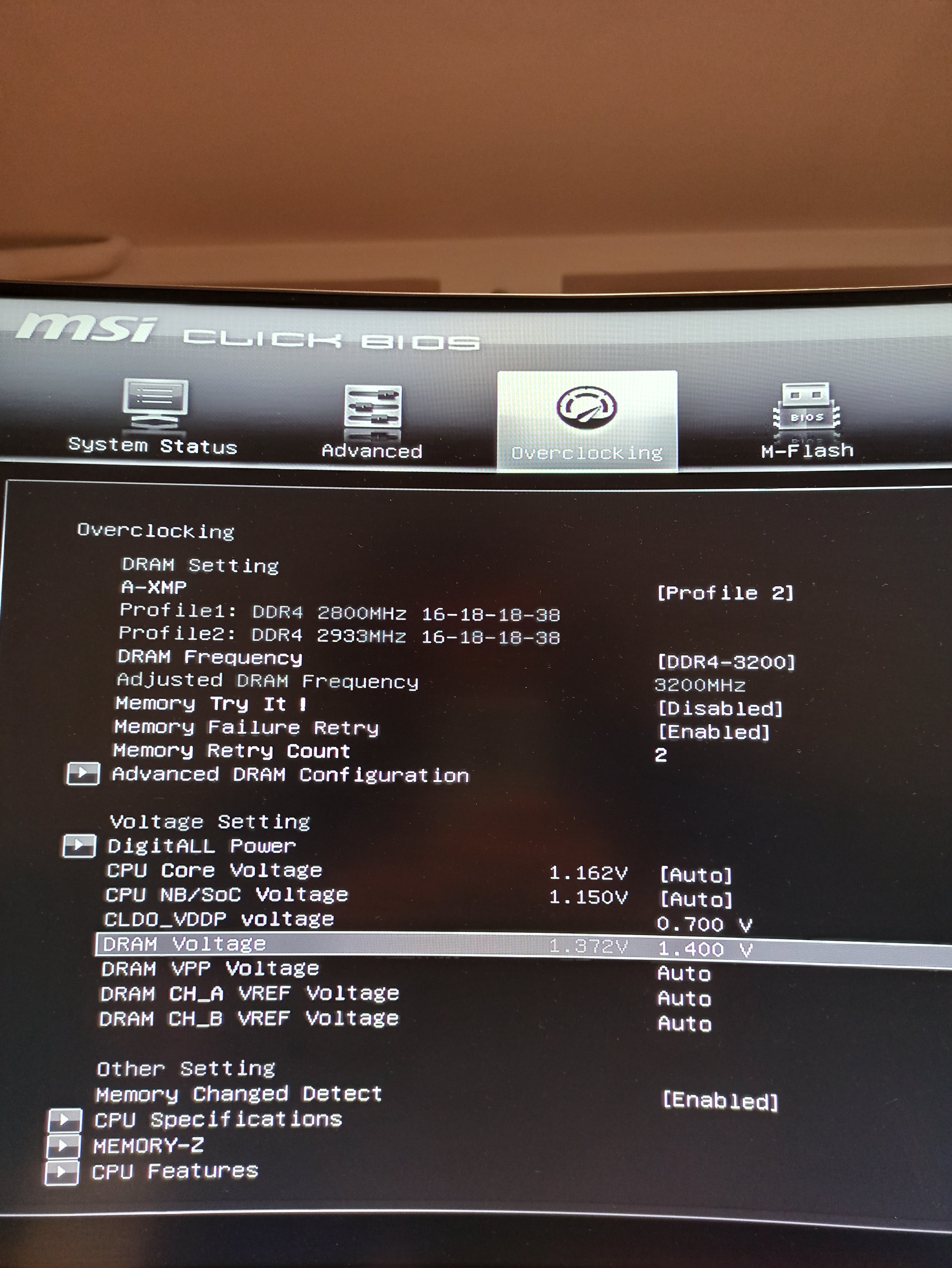 DRAM Voltage hatte ich schon bei 3000MHz auf 1.37, darunter ging nicht. Deswegen habe ich es hier beibehalten.
