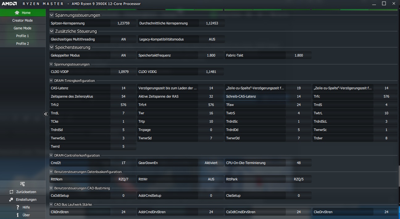 Weiß aber nicht ob da nicht irgendwo noch mehr geht. Bin mir insbesondere bei Widerständen und Spannungen unsicher. Ich hab ja nur 1.37V anliegen und es ist 15000% Karhu stabil. Aber wenn ich z.B. tRCDRD von 19 auf 18 setze, kann ich auch mit 1.45V nicht erfolgreich in Win booten. Jegliche 3600MHz CL14 @1.4-1.45V Versuche endeten mit nicht-booten und entsprechendem CMOS-Reset.