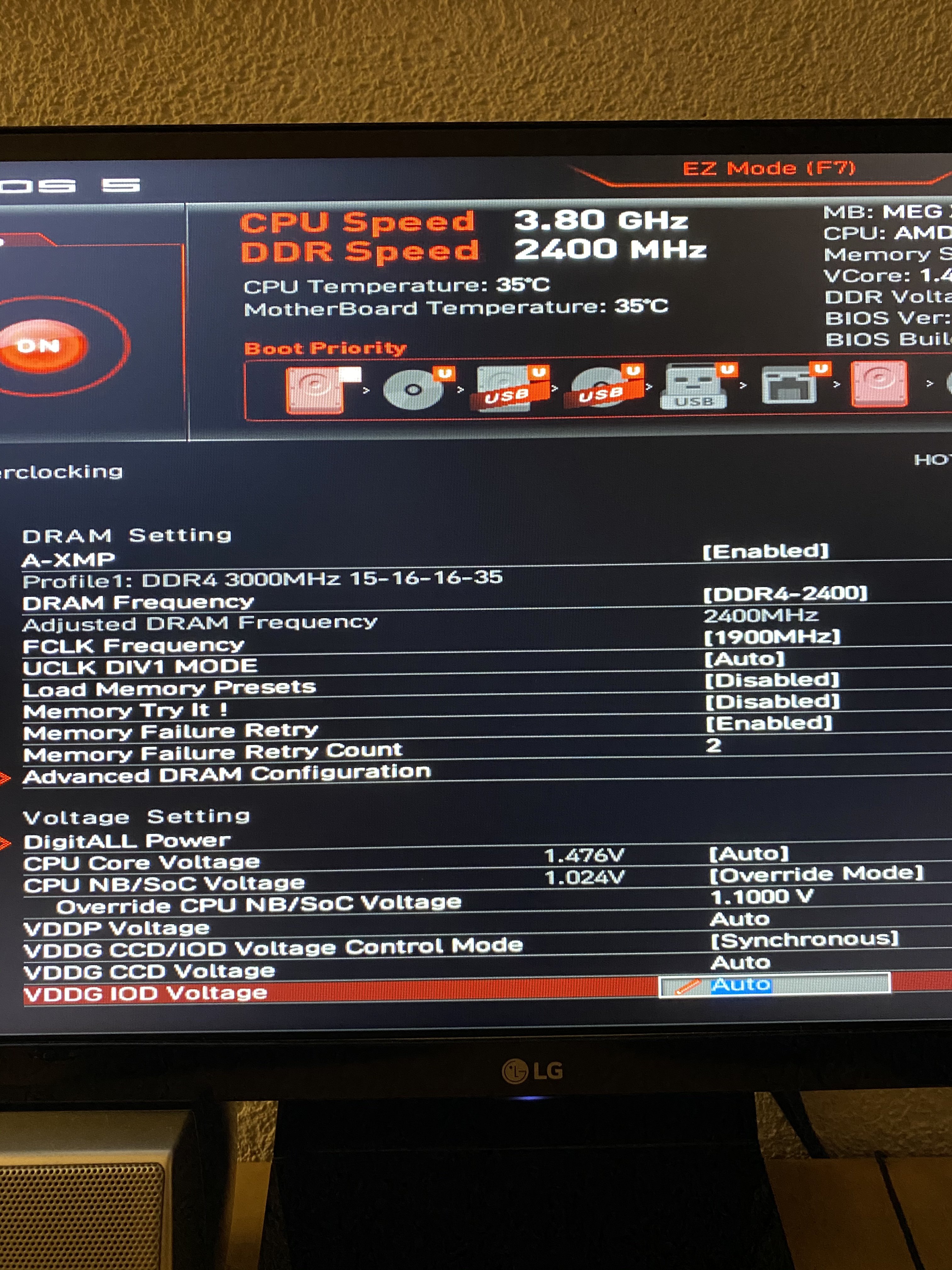 Ich nochmal. Nachdem ich jetzt 3733 soweit stabil am laufen hab, wollte ich 3800 versuchen. Orientiere mich wieder an den Vorschlägen mit laschen Timings und scharfen Timings für 3800 von ZeroCool. In beiden Fällen startet der Rechner nicht.