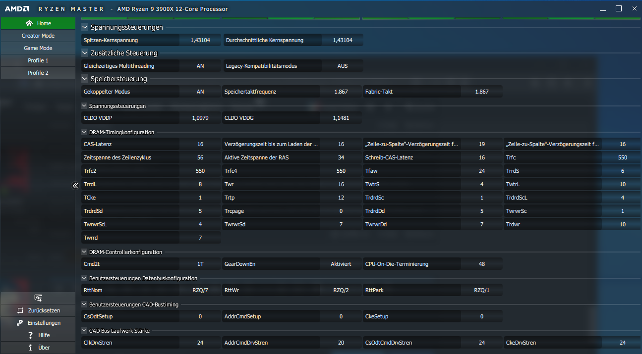 Deswegen ja der niedrige Takt, so ist der Speicher komplett raus als Fehler. Wenn der Rechner da schon nicht Bootet kannst du da auch mit anderen Wiederständen nichts rausreißen. Ob eine andere Soc VDDG oder VDDP spannung noch was bringt, kannst nur du versuchen, viel Hoffnung geb ich dir da aber nicht. Es scheint da deine IF dicht zu machen, Die IF hat da eine sehr harte Wall, da kann man nur sehr begrenzt mit Spannungen gegen arbeiten. Genau so kann ein nur stupfes erhöhen der Spannungen Kontraproduktiv sein, also auch nach unten testen.