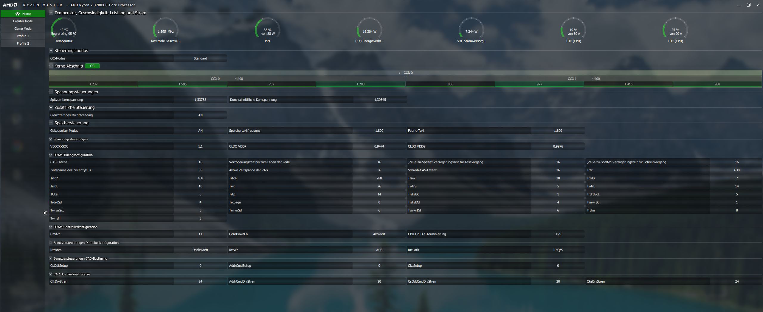 heyho . Ich bin Recht unerfahren was Ram OC angeht habe in letzter zeit viel probiert. Mir haben die Try it Profile ziemlich geholfen . auf basis derer ich nun ein vorläufiges ergbnis ausgemacht habe. Mein Ziel ist es möglichst viel Performance bei Minimal mehr Spannung (1,37-1,38V) rauszuholen. ich muss die momentanen Settings noch auf langzeit stabilität testen. aber so sieht es erstmal aus . Command Rate ist bei 2. . 1 geht nicht ist zudem ausgegraut