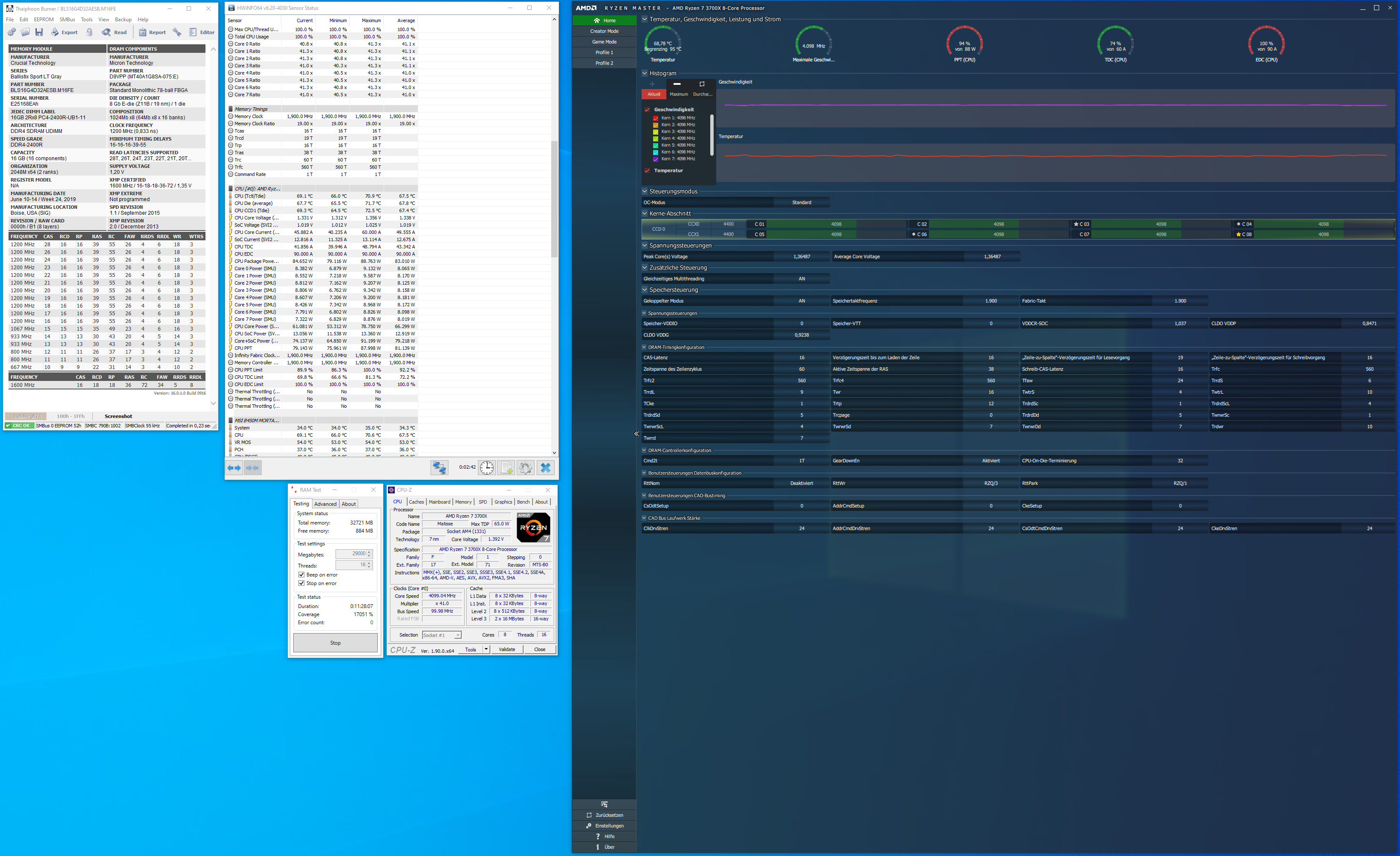 Jetzt muss ich mich einmal selbst zitieren... Nachdem ich PPT aktiviert habe, ist das System nicht mehr stabil und startet bei < 1000% neu. Werde jetzt die Spannungswerte einmal anheben. VDDP (0,875) und VDDG (0,975) Werte sind okay? Was würdet ihr dem System bei längerer Volllast (48-72 h) maximal zumuten?gh0stdriv3r schrieb:Habe jetzt eine Weile probiert. Nachdem ich die Spannung noch einmal leicht angehoben habe, lief Karhu problemlos durch.