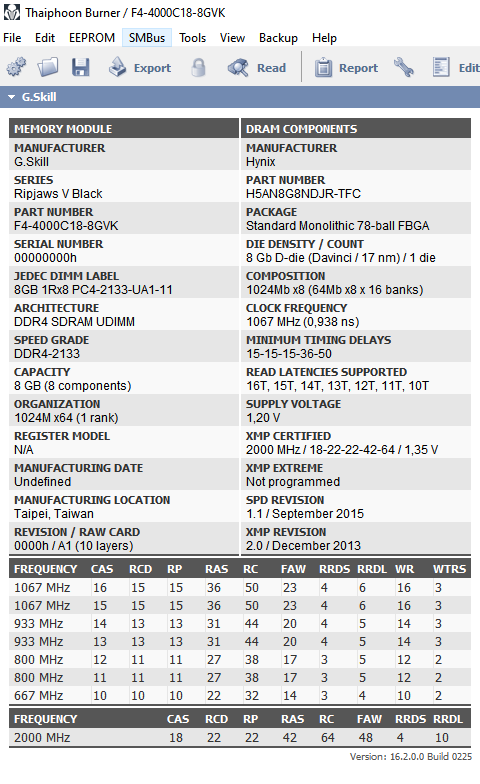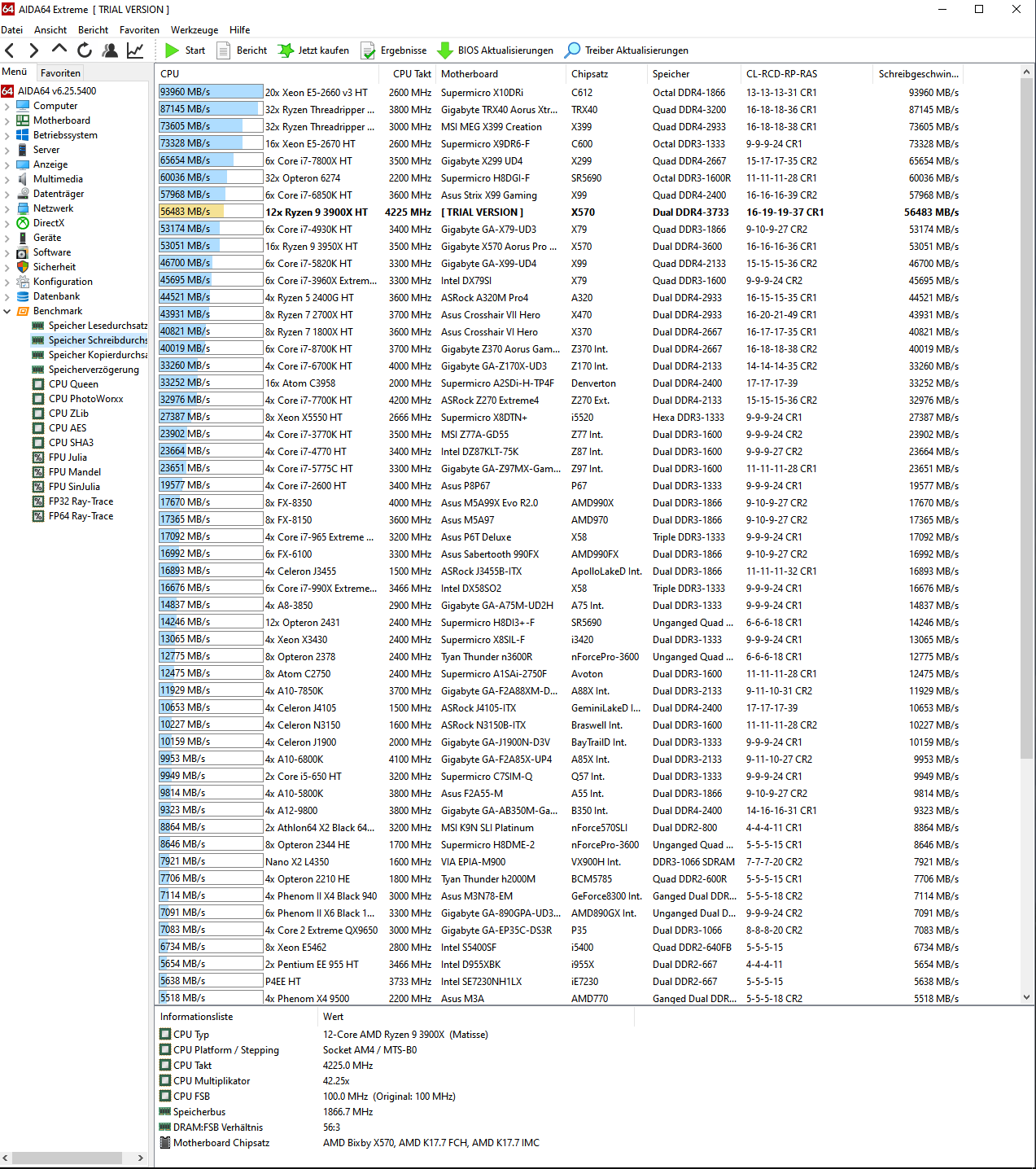 Latency: 66.0 ns, FCLK: 1867 MHz, Timings: 16-19-19-19-37-56-448 RAM: 4x 8GB Hynix DJR, 2x F4-4000C18D-16GVK, Read: 58667 MB/s, Write: 56483 MB/s, Copy: 61307 MB/s, CPU: R9 3900X, VSOC 1,1V (stock), VDDG 0,95V, VDIMM: 1,39V, VDDP 0,90V, ProcODT: 36,9 , RTT: 7 3 1, Karhu RAM-Test: 10100%, Mainboard: MSI X570 Unify, BIOS: 7C35vA3.