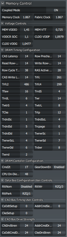 Die Speichermodule werden 39°C und 43° warm, das sollte unbedenklich sein. Ich habe mal diese Settings im Bios gesichert und wage mich vielleicht morgen mal testweise an ne IF von 1900MHz. Ich mag glatte Zahlen einfach zu sehr.