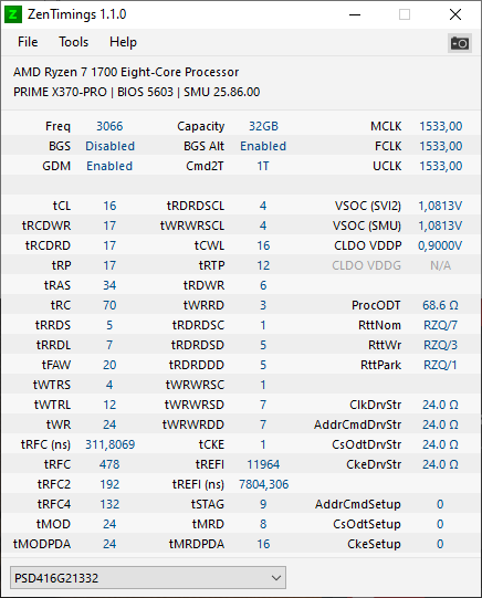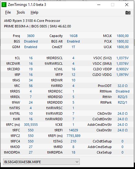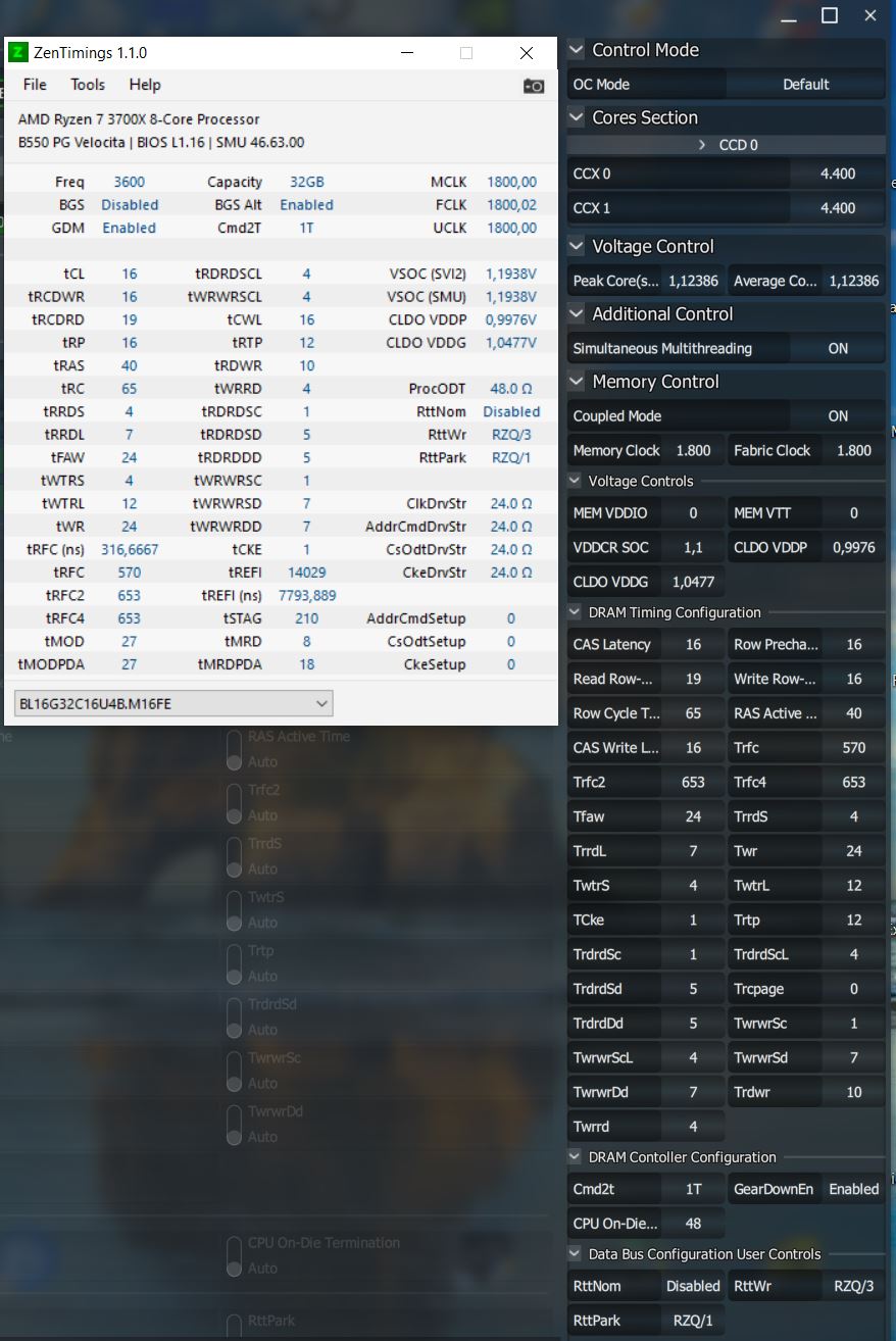 Bei ZenTimings ist der SOC mit 1,19V ausgewiesen, aber im BIOS habe ich 1,1V eingestellt und das zeigt auch Ryzen Master an.
