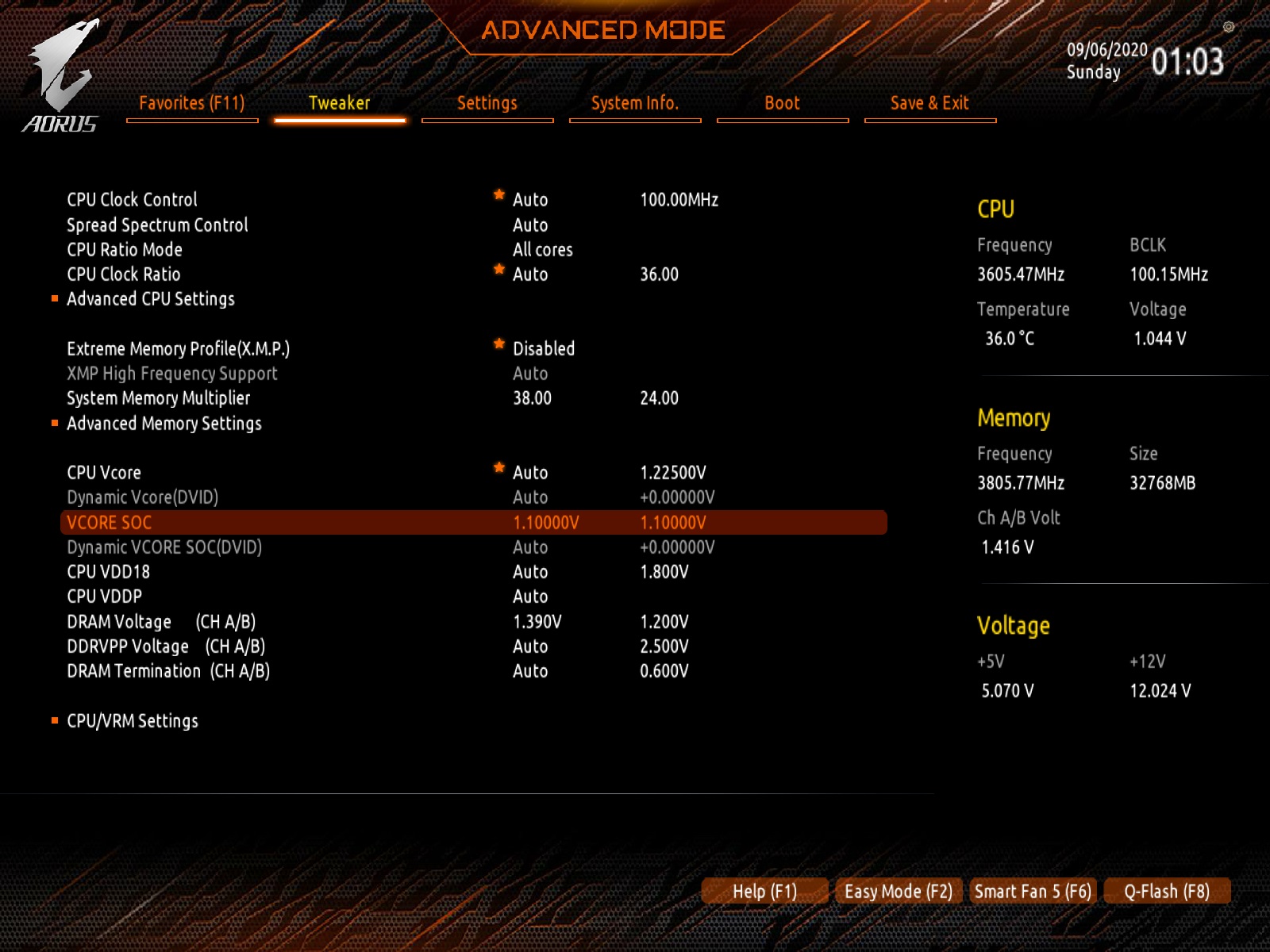 Ja das der richtige. Habe auch ein Gigabyte Brett... Ich nutze auch meist die einstzellungen im Tweaker, ist einfach übersichtlicher. (aber dort findest du nicht alle)|Moppel| schrieb:Also ich habe nur diese einen Wert zum Verstellen gefunden. Und der steht auch nach wie vor auf 1,1V.