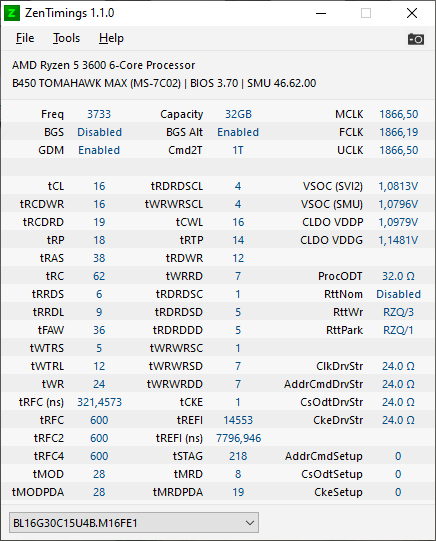 Als nächstes habe ich "Lasche Timings 3733 CL16 ~1,38v" getestet. Ebenfalls TestMem5 mit Extreme1@anta777 config für 3 cycles - keine Fehler. DRAM Calc Membench 500% ebenfalls 0 Error. Wenn ich allerdings zocke (BF1, Total War 3K) stürzt nach etwa 30 min entweder das Game oder mein PC ab und startet neu.