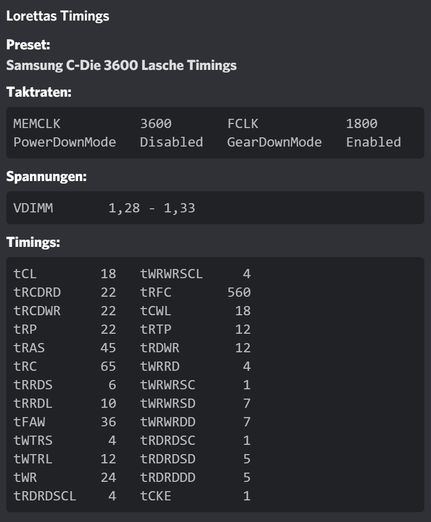 Werte übernommen wie beschrieben und es läuft jetzt besser mit den 3600/CL18 Settings.
