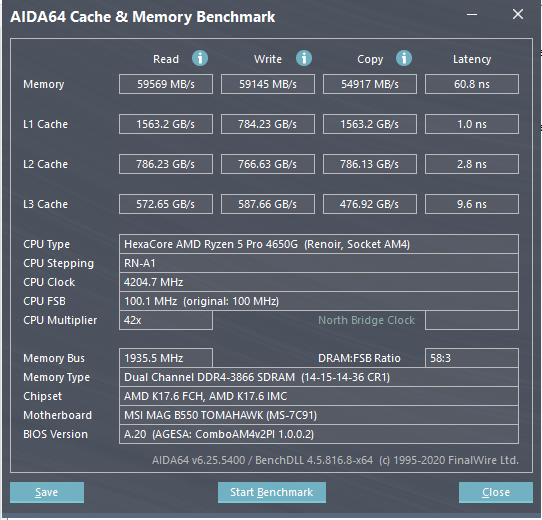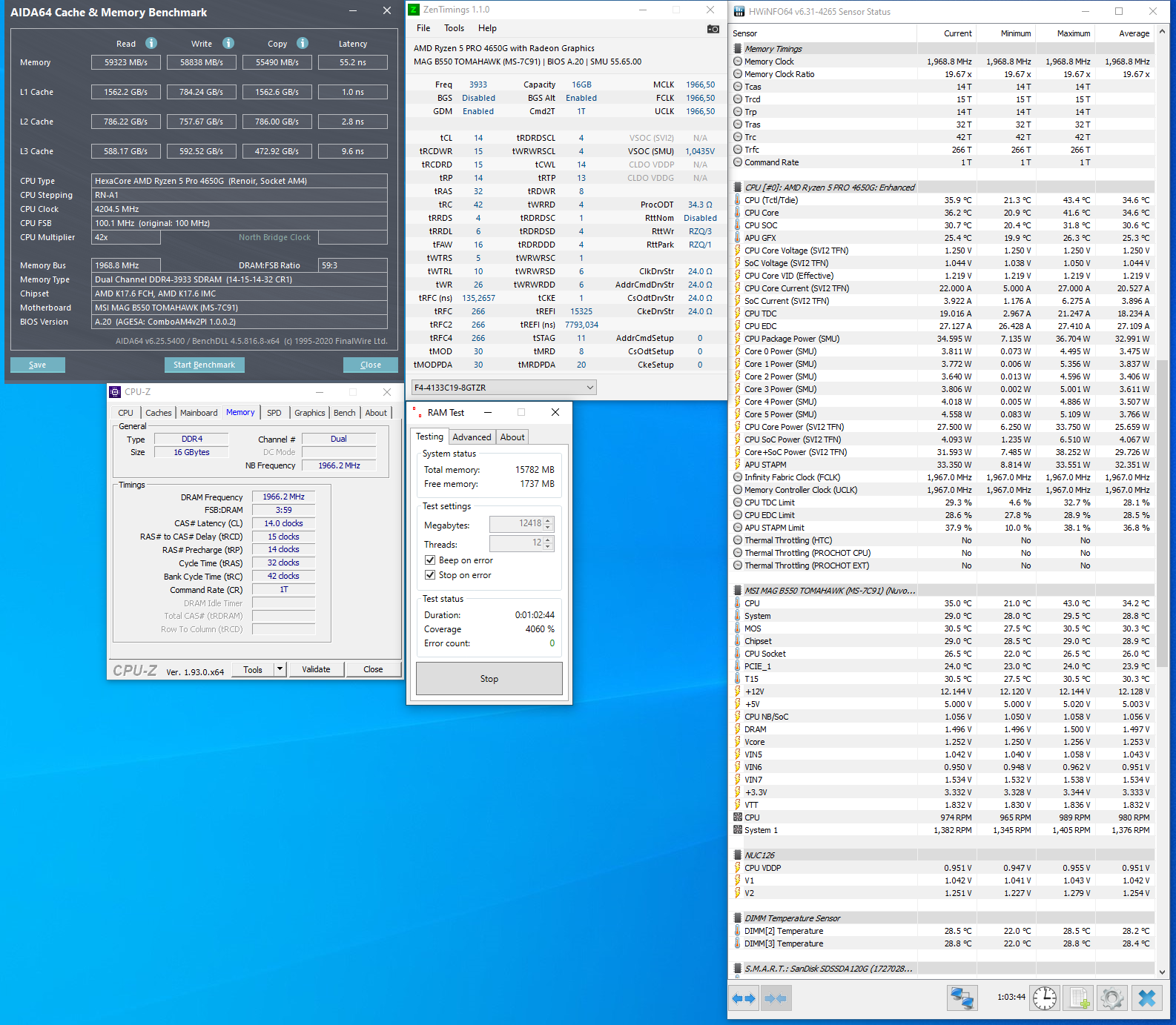 System: MSI B450 Tomahawk MAX mit Bios E7C02 AMS 350 , Ryzen 5 3600, 2x16GB Ballistix Sport LT 3200