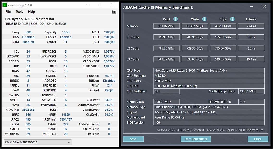 3800 MHz 18-21-21-21-40 -//-1 (Latency = 69.0)