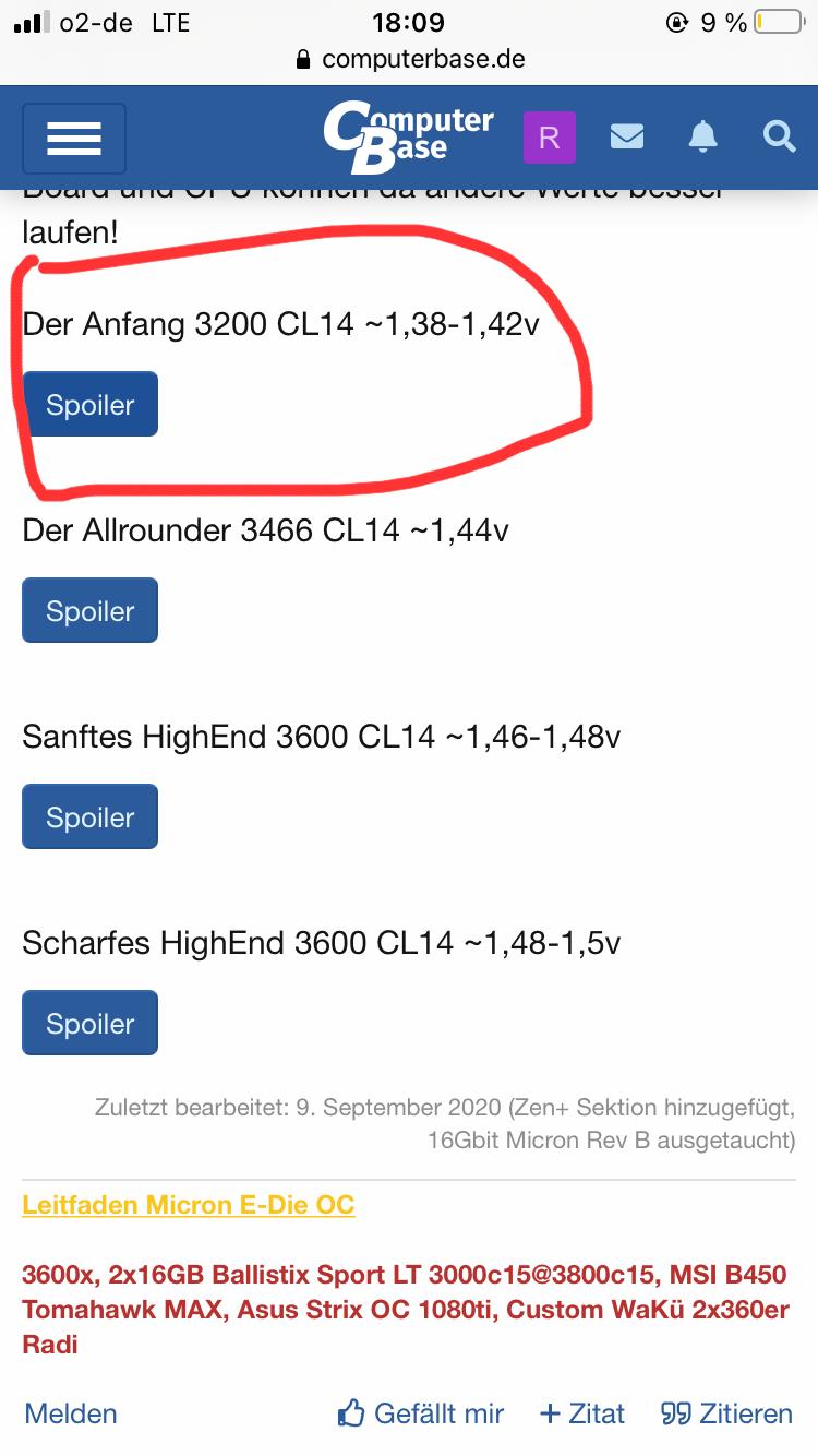 Ich verwende einen 32GB Crucial Ballistix Sport DDR4-3200 CL16 Dual Kit auf einem MSI B450 Gaming Plus MAX Mainboard mit einem AMD Ryzen7 3700x 8Kerner. Laut der Aussage meines IT Shops, welcher meinen Gaming Pc zusammengebaut hat, kann man den RAM auf 3600mhz übertakten. Nach dem Umstellen ist mein Pc nicht abgestürzt und funktioniert weiterhin einwandfrei. Nutze derzeit den aktuellsten BIOS für den B450er. Allerdings muss ich ja auch die Timings korrekt einstellen. Mein Ziel sind mehr FPS beim Gaming zu erreichen, auch wenn es nur minimal ist - aber gerne soviel wie möglich. Da hier knapp 1180 Seiten hinter mir liegen, würde ich gerne nachfragen, welche Timings sich am besten für mein Rig eignen