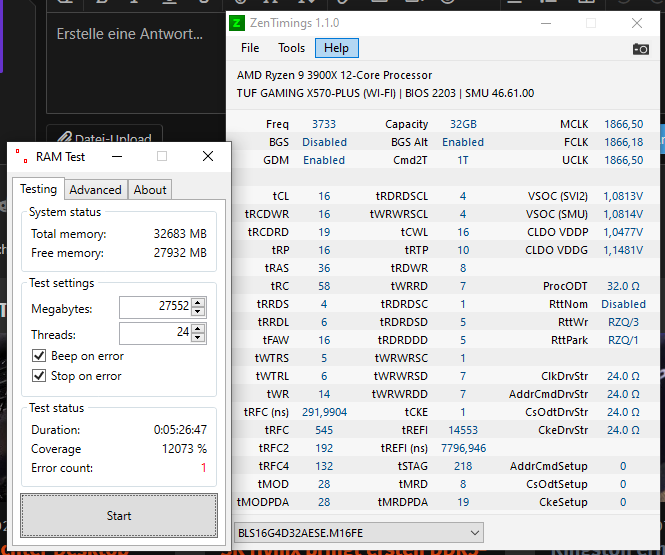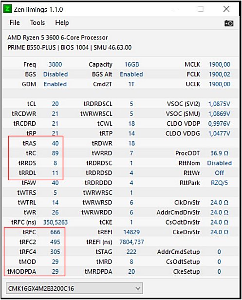 ah - Samsung Cdies ja?Little John schrieb:Macht es Sinn, wenn ich nachstehende automatisch gesetzte Subtimings aus den Screenshots 3733 vs. 3800 MHz anpasse = Subtimings von 3733 MHz für die 3800 MHz übernehme?