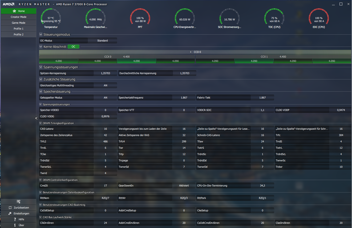 Hab mit 2 Riegeln dann zumindest CPU Tests gemacht; Cinebench R20: 25000 Pkt.