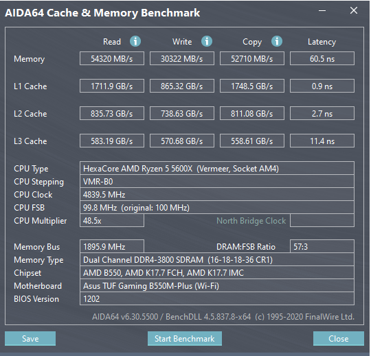 Hab erstmal geschaut halbwegs stabil was hinzubekommen, mit sehr laschen Timings. Den IF von 2000 schafft die CPU (vielleicht bisher) nicht. Interessant: Wenn ich nur mit XMP starte (3200 CL14) kommen im AIDA 61,5ns raus. Das ist ca. das Ergebnis, an dem mit dem R5 3600 nicht mehr weiter kam.