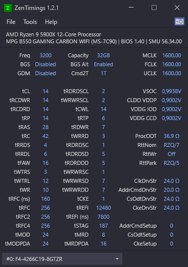 Dazu würde ich vllt. den GDM erstmal mal auf On setzen. Kenne deinen "Tweakingverlauf" nicht, aber würde da Step by Step rangehen falls du das nicht so gemacht hast und nicht gleich mit der Brechstange reinDein Ziel = scharfe Timings oder Takt? Oder ein Verhältnis?