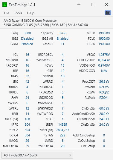 Auf meinem ASRock X570 Gaming 4 läuft (noch) ein Ryzen 5 3600 mit Werkseinstellungen. Gepaart hatte ich ihn bisher mit 64GiB RAM, bestehend aus vier Modulen (2x 2er-Kits) G.Skill RipJaws V DDR4-3600 CL 19-20-20-40