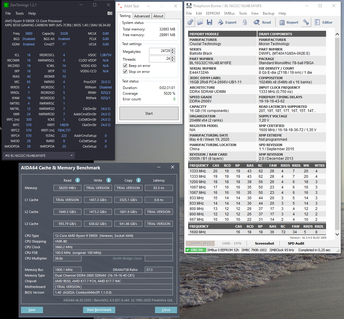 ich habe mir ein PC zusammengestellt mit 5900X, MSI B550 Gaming edge und 4 x 8gb Ballistix RAM.