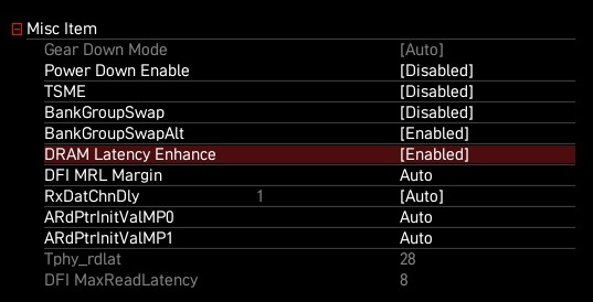 Ich auch, und das hatte auch einige ns Verbesserung gebracht, als ich noch das XMP Profil an hatte.MehlstaubtheCat schrieb:DRAM Latency Enhance die hab ich auf Enabled also aktiviert,